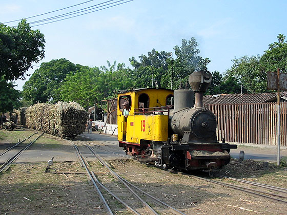 At Gempolkerep, shunting is done using a 5m wire cable. The benefit of this system is that the locomotive can be switched into a parallel track and so will not become trapped between two sets of cane loris. (RD) |