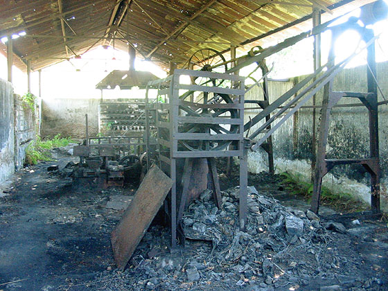 Tasikmadu buys in its anthracite; at the closed mill at Cepiring is the remains of a plant to make coke or charcoal (background) and then break it up (foreground). (RD) |