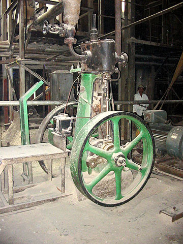 This vertical cylinder engine at Sindanglaut carries a small plate which identifies it as a Robey, 29110. Once the power for the mill's bagasse baler, it was not used in recent years but appeared to be serviceable. Unfortunately it was scrapped in 2004. (RD) |