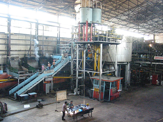 This is the mill's Dorr clarifier with its original (disused) vacuum mud filter behind. Almost invisible behind the clarifier is the equipment for the second sulphitation. (RD) |