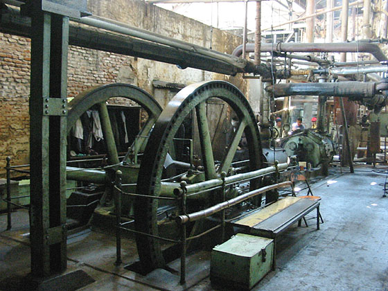 This is a Werkspoor vacuum pump (435/1900). Although in this case it carries an identification, the presence of twin flywheels usually indicates an older machine. (RD) |